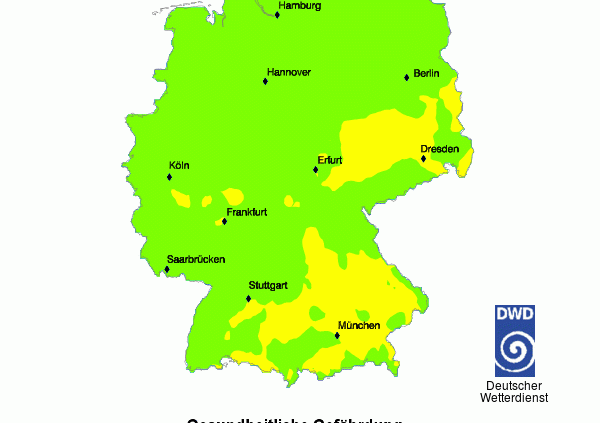 in DWD Wetter Gefahrenindizes - täglich aktuell/von Mein Genial VitalDie Gefahrenindizes für Wetterfühlige weisen für verschiedene medizinische Formenkreise (Herzkreislauferkrankungen, rheumatische Erkrankungen, Atemwegserkrankungen, allgemeine Befindensbeeinträchtigungen) auf den vom aktuellen Wetter zu erwartenden Stress für den menschlichen Organismus (Biotropie) hin.